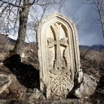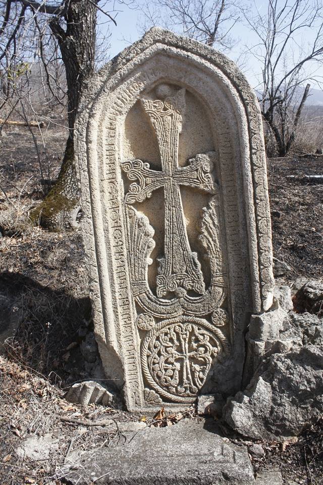 Այսօրվա Քաշաթաղի մայր գետի՝ Հակարիի 3 մեծ վտակների՝ արևմտյան կողմի Աղավնոյի, միջին Հոչանցի և արևելյան Շալուաի հովիտներում պահպանվել էն հայոց պատմամշակութային շատ հուշարձաններ, որոնք հուշում են այն մասին, որ պատմական Մեծ Հայքի Արցախ և Սյունիք աշխարհների այս տարածքներում մինչև 18-րդ դարակես մեր պապերն են ապրել: Նրանց թողած պատմամշակութային ժառանգությունը, թեկուզ երկուսուկեսդարյա գերությունից հետո, պարզապես խոսում է այն մասին, որ մեր նախնիներն այդտեղ դարերի ընթացքում ստեղծել ու արարել են, վանքեր ու եկեղեցիներ են կերտել, քարե կամարակապ կամուրջներ հիմնել: Հազարամյակների պատմություն ունեցող ամրոցների ավերակներն ու հնադարյան դամբարաններն էլ հուշում են՝ այս տարածքները շատ վաղուց եղել են հայ մարդու բնօրրան: Վերջին 2-3 դարերի ընթացքում մեր երկրին տիրացած քոչվորները մեծ ավերածություններ են կատարել հուշարձանների հանդեպ: Բազում եկեղեցիներ հիմնովին ավերվել են, թշնամին հատկապես ավերել և հողի երեսից վերացրել է հայոց գերեզմանատները՝ փորձելով վերացնել հայկական հիշեցնող ամեն ինչ: Սակայն այսքանով հանդերձ, այսօր այս տարածքներում ցանկացած անտառում ու ձորակում, սարահարթին ու ժայռապռնկին, գետափին ու լեռնալանջին, ծերպերին աչքդ կշոյեն հայ վարպետի քանդակած խաչն ու զարդանախշը, վիմագիր արձանագրությունը, թփուտներով պատված մատուռի ավերակը, ժայռին թառած եկեղեցին: Պատմական Մեծ Հայքի Վայկունիք-Վակունիս գավառի Շալուա և նրա արևելյան Արախիշ/Րախիշ/ վտակի միացման տեղում՝ ձախափնյա հարթությունում՝ ծովի մակերևույթից 1270 մ. բարձրության վրա մեծ քարաբեկորին խաչեր կան քանդակված: Այստեղից սկսվում է անտառապատ բավականին թեք լանջը՝ ձգվելովմոտ130 մետր ուղղահայաց վեր: Այստեղ ամբողջ լանջը եզերվում է ուղղաձիգ ժայռերով, իսկ վերևում արդեն մի մեծ հարթություն է՝ ալպիական մարգագետին: Հարթության հարավային մասում՝ հենց ժայռապռնկին, տարիներ առաջ Մովսեսաշենի և Վազգենաշենի բնակիչները հայոց հանգստարանի տեղ են հայտնաբերել, որտեղ կան 10-ից ավելի շիրմաքարեր: Հիմնականում հարթ տապանաքարեր են՝ առանց արձանագիր: Սրանց մեջ է արվեստի իսկական գլուխգործոց մի խաչքար, որնունի արձանագրություն: Հուշակոթողը կերտված է դեղնավում քարից: Չափերն են՝ 235-105-35սմ, վերևի մասը կիսակլոր է, ավարտվում է սլաքով: Կոթողը հիշեցնում է մուտք՝ եզրաձակված 3 շերտով: Առաջին շերտը կազմված է կլորավում մոտ 50 զարդանախշերով, երկրորդը ամբողջական կլոր եզր է՝ բաժանված առաջինից բարակ փոսորակով: Երրորդ շերտի վրա արձանագրությունն է, որն սկսվում է ներքևի ձախակողմյան անկյունից և վերջանում աջ անկյունում: Տարածքի պատմական հուշարձանների լավագույն գիտակ Ալեքսան Հակոբյանի հետ հուշակոթողն ուսումնասիրել ենք 2000թ. հունիսին: Պատմաբանն արձանագրությունը վերծանել է. ՅԱՆՈՒՆ Ա/ՍՏՈՒԾՈ/Յ, ԵՍ՝ ԳԵՐԳ ԿԱՆԿՆԵՑԻ ԶԽԷՉՍ Ի ԲԱՐԷԽԱՒՍՈՒԹ/Ի/Ւ/Ն/ ԻՆՁ ԵՒ ԱՄՈՒՍՆՈՅ ԻՄՈՅ ՄԻՆԱՅԻՆ ԵՒ ԱՂԲԷՐԱՑՆ « Չ… Խաչքարի ձախ անկյունը կոտրված է, և բնականաբար հնարավոր չէ ամբողջությամբ ընթերցել արձանագրությունը: Սակայն վեևջին Չ տառը հավանաբար խաչքարի կերտման թվագրության առաջին թիվն է՝ 700: Չ-ից հետո նշմարվում է նաև Կ /60 թիվ/ տառի մասնիկը: Սա հուշում է, որ խաչքարը կերտվել է հայոց ՉԿ /հնարավոր է, որ եղել են տասնավոր և միավոր արտահայտող տառեր/ թվականին: Այսպիսով հրաշակերտ այս խաչքարը կանգնեցվել է 1311-1320-ական թվերին /760+551=1311/: Ա. Հակոբյանը նշում է, որ վիմագրության մեջ հիշատակված իշխան Գևորգ անունը, նրա կին Մինան նվիրատվության արձանագրություն են թողել նաև Գանձասարում. ԿԱՄԱՒՆ Ա/ՍՏՈՒԾՈ/Յ, ԵՍ՝ ԳԵՐԳ, ՈՐԴԻ ՀԱ//ՅՐԱՊԵՏԱՅ, ԵՒ ԱՄՈՒՍԻՆ ԻՄ ՄԻՆԱ, ԻՇԽԱՆՈՒ//ԹԵ/ԱՆ/ ՋԱԼԱԼԻՆ ՄԻԱԲԱՆԵՑԱՔ Ս/ՈՒՐ/Բ ՈՒԽՏԻՍ, ՏՎԱՔ //ԸՆԾԱ/Յ/