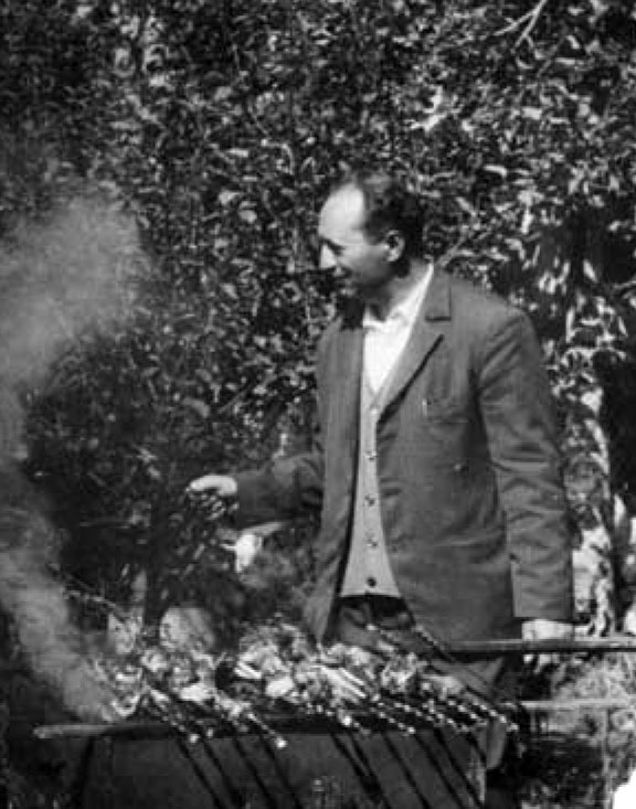 Բառացի մեջ եմ բերում նրա ասածը․«Տեսնելով փոքրամարմին, նիհարավուն դերասանին` ասացի՝ սա ո՞վ է, որ ինձ հետ հավասար խմի /ինքը, իրոք, աժդահա էր/: Ես վերցրի մեծ բաժակը, նրան տվի փոքրը: Մի դույլ գինի և մի դույլ էլ թթի օղի էինք դրել մեր սեղանի մոտ: Որոշ ժամանակ անց տեսա, որ էս գործը հեռուն գնացող է: Բաժակս փոքրացրի: Ինքը սկսած տեմպավ շարունակում էր խմել: Մի որոշ ժամանակ հետո չիմացա՝ ինչ եղավ, հաջորդ օրն արթնացա մեր բազմոցին: