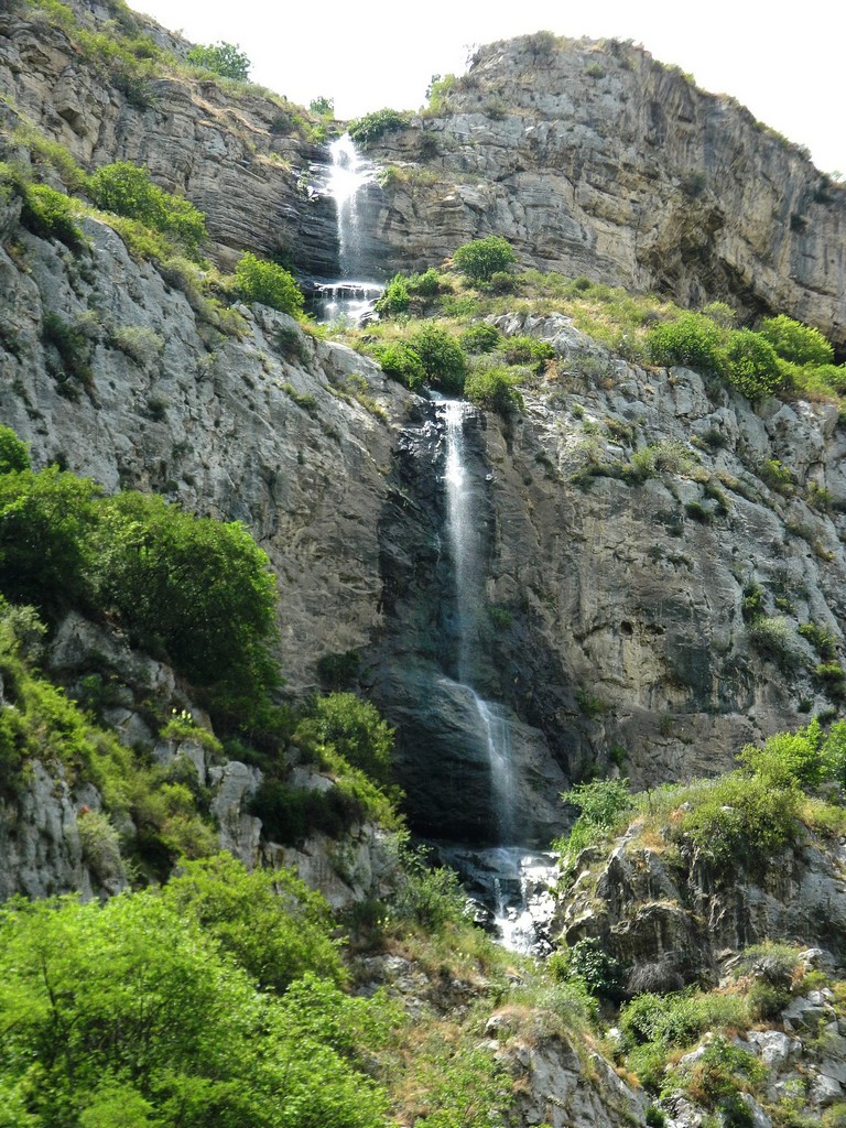 Պատմական տներից մեկի բակը մաքրվել է մացառներից, որտեղ հնարավոր է դարձել նույնիսկ գնդակով խաղալ: Այստեղ էլ կայանեցինք: Մեզ միացան նաև Սյունիքի մարզի Սիսիանի տարածքի Լոր գյուղի միջնակարգ դպրոցի բարձրդասարանցիները, նրանց ուսուցիչները՝ տնօրեն Լիաննա Գրիգորյանի գլխավորությամբ: Միասին հասանք կիրճի ամենահետաքրքիր վայրը՝ Մամռոտ Քար ջրվեժ, որը հայտնի է նաև Զոնտիկներ (ռուս.՝ зонтики) կամ Հովանոց անունով: Աղբյուրն սկիզբ է առնում մամռաքարից քիչ վերևում գտնվող քարանձավից, ու ստեղծվել է բնության հրաշք՝ հովանոցաձև ջրվեժը՝ Կարկառ գետի աջ ափին: Այստեղից դիմացի ժայռապատին երևում են պարիսպներ, որոնց հետևում քարայրներ են՝ հնօրյա ամրություններ, թաքստարաններ: Ցանկացած ոք անպայման մտնում է հովանոցի տակ՝ քարանձավ, որի առաստաղն ու պատերը պատված են աղային գոյացություններով: Տարբեր գույների քարային պատկերները, նրանցից կաթկթող ջուրը պարզապես հրաշալի տրամադրություն են ներշնչում մարդուն: Այստեղ հասնողը երբեք չի վախենա թրջվելուց: Բնական է՝ բոլորի ցանկությունն է լուսանկարվել հովանոցի մոտ, ջրվեժի տակ, շատերը լողանում են գետում՝ բնական լողավազանում: Ջրվեժի մոտ պահպանվել են մի քանի տան ավերակներ: Տներ, որոնք կառուցվել են 19-րդ դարում և լքվել 20-րդ դարի 30-40-ական թվականներին: 19-րդ դարում բերդաքաղաքը մեր մշակույթի կարևոր կենտրոններից մեկն էր՝ հայաշատ քաղաք՝ դպրոցներով, թատրոններով, մամուլի տասնյակ անուններով, եկեղեցիներով… Եվ այս քաղաքը պետք է ունենար ջրաղացներ: Հունոտի կիրճում 19-րդ դարասկզբից կառուցվեցին 10-ից ավելի ջրաղացներ, ինչպես նաև՝ բնակելի տներ ու քարե կամարակապ կամուրջ՝ 25մ երկարությամբ, 5մ լայնությամբ, 8մ բարձրությամբ: Այսօր էլ պահպանվել են ջրաղացներից մի քանիսի ավերակները: Պարզապես հիանում ենք մեր պապերի կերտածով: Զգացվում է՝ տներն ու ջրաղացները, կամուրջը կառուցվել են իսկական վարպետների կողմից: Թաղակապ տանիքով ջրաղացները նույնիսկ եկեղեցու տեսք ունեն: Պահպանվել է ջրաղացները ջրով ապահովվող առվի հետքը, որ այժմ դարձել են դեպի մամռաքար տանող ճանապարհի հատված: Նույն ճանապարհով գնացինք ու վերադարձանք: Հանգստի պահին կազմակերպվեց ասմունքի փոքր հանդես: Հայ մեծ բանաստեղծի՝ Համո Սահյանի ծննդավայրի կրթօջախի ավագ դասարանների սաները հանդես եկան իրենց հայրենակցի բանաստեղծությունների ընթերցմամբ: Տնօրենն ասաց, որ ունեն 45 աշակերտ, 17 ուսուցիչ: Էքսկուրսիան դեպի Հունոտի կիրճ առաջին անգամ է և իրականացվել է “Ջինիշյան” հիմնադրամի հատկացումներով: Հավելեց նաև, որ տարրական ու միջին օղակի աշակերտներն այցելել են Գնդեվազ, իսկ բարձրդասարանցիները, իր ու ուսուցիչներ Լորիկ Խաչատրյանի, Մերի Մինասյանի, այլոց հետ, եկել են Արցախ: Զրուցեցի զբոսավայրի հսկիչներից 63-ամյա Վյաչեսլավ Առուստամյանի հետ, ով 1990թ. հեռացել է Բաքվից, բնակություն հաստատել ՀՀ Կալինինոյում, այնուհետև տեղափոխվել Մխիթարաշեն: Ունի 3 որդի. երկուսը նույնպես Մխիթարաշենում են բնակվում: Ավերակ երկհարկանի 2 տներից մեկի առաջին հարկը ծառայում է հսկիչներին: Վյաչեսլավն ասաց, որ տներից մեկը պատկանում է իր մոր՝ Անահիտի հորը՝ Բախշի Բաղդասարյանին, իսկ մյուսը նրա եղբայր Մուքելին է: Պապն ապրել է 127 տարի, ունեցել է 16 զավակ, ովքեր ծնվել ու բանակվել են այստեղ, այնուհետև անցած դարի 30-40-ական թվականներին հեռացել ու բնակություն հաստատել տարբեր վայրերում: Հայրը՝ Սարոն, Մխիթարաշեն գյուղից է: Այն ժամանակ տներն ունեցել են նաև սառցատներ: Պահպանվել է նաև պապի տան սառցատունը՝ կիպ ժայռին, նեղ ու խոնավ: Այս տների դիմաց՝ գետի աջ ափին, թթենու այգու մեջ պահպանվել է Հունոտի հանգստավայրը: Մի քանի տասնայակ տապանաքարեր հուշում են, որ 19-րդ դարում ձորալանջի