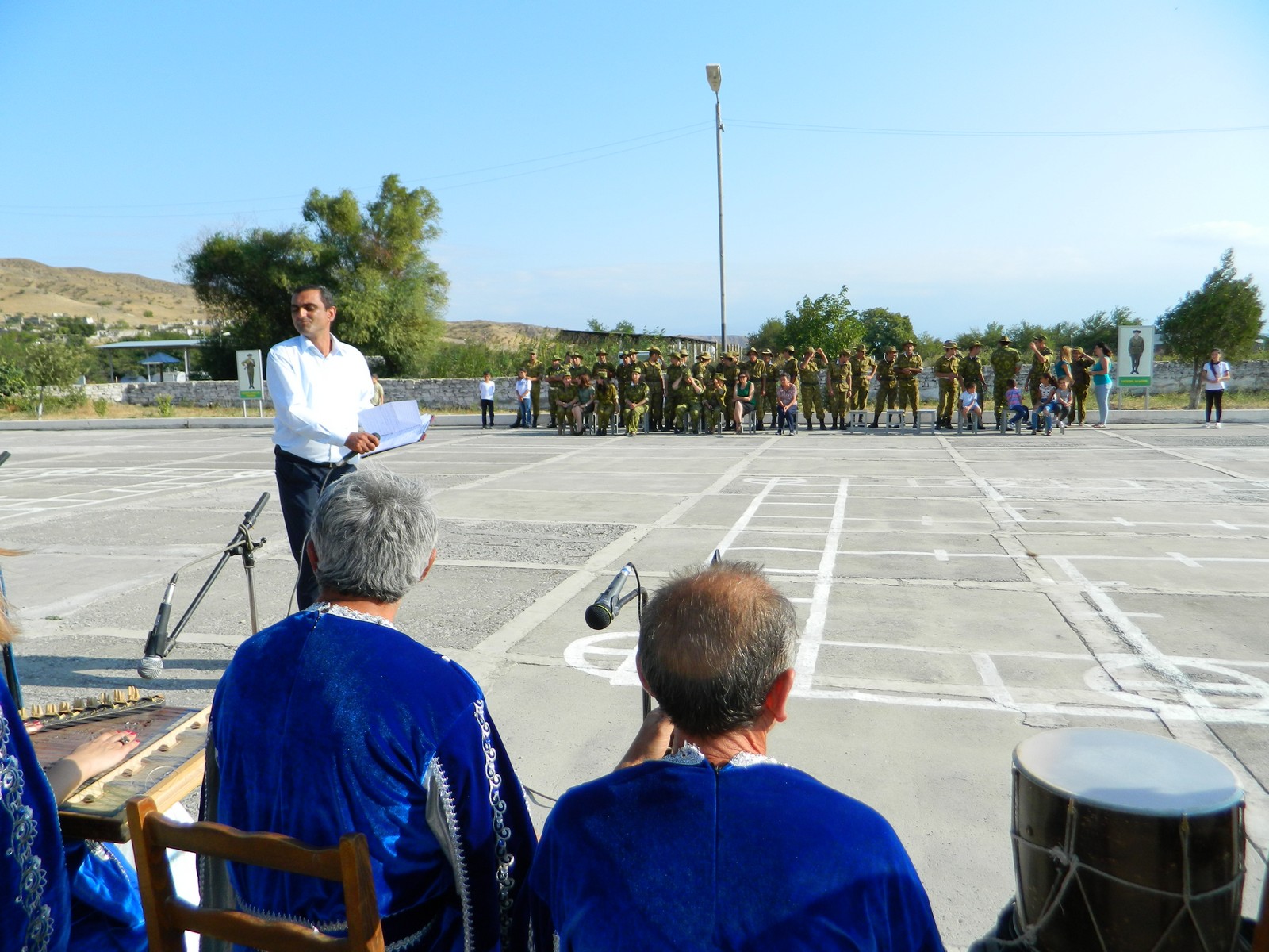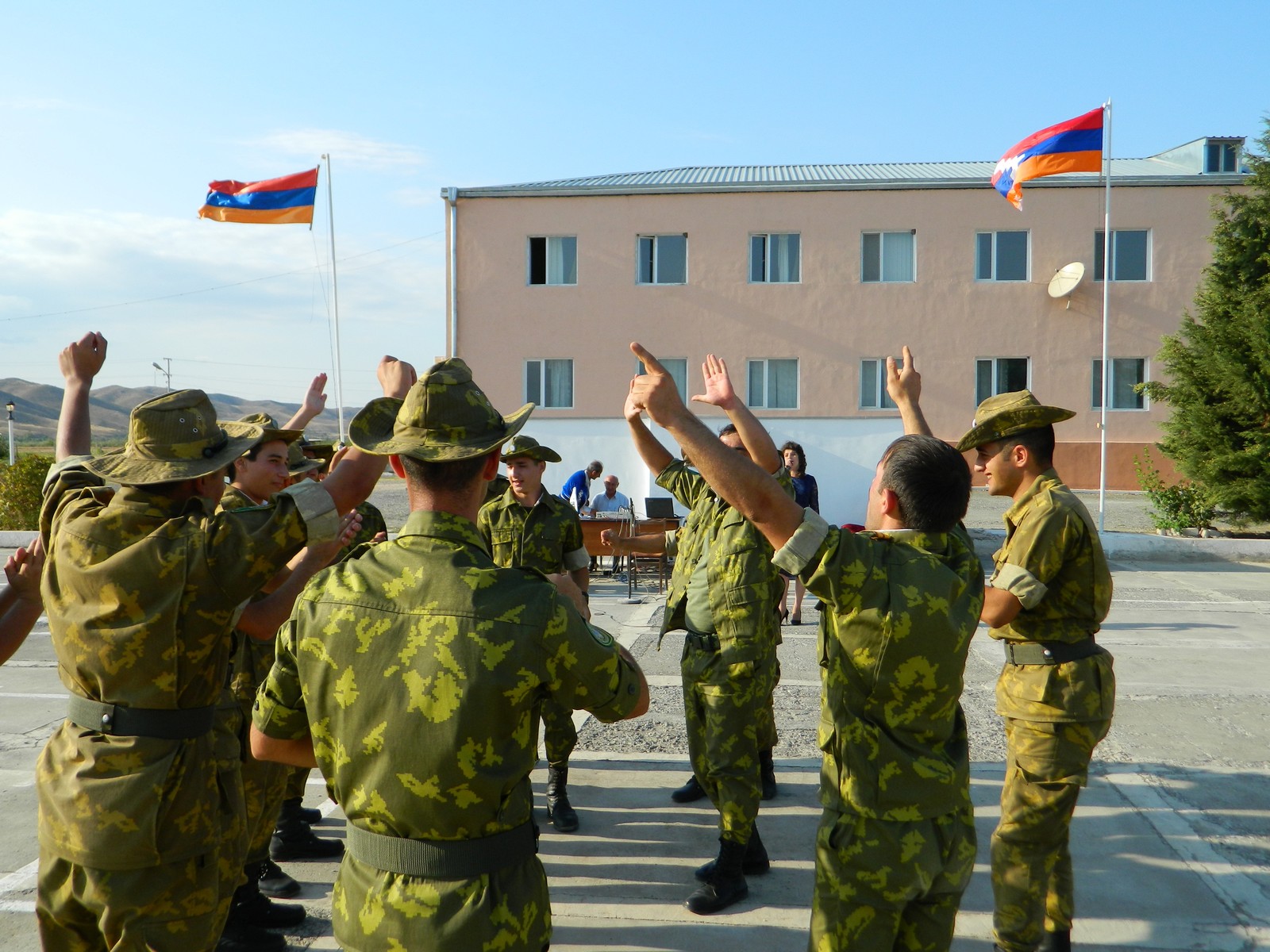 Նույն օրը «Բերձոր»-ը ելույթ ունեցավ նաև սահմանապահ զինվորների համար: Թիվ զորամասի հրամանատարի դաստիարակչական աշխատանքների գծով տեղակալ, փոխգնդապետ Ա. Գասպարյանը դիմավորեց երգիչ-երաժիշտներին: Համերգը կայացավ զորամասի շարահրապարակում, որտեղ էին սպայական կազմը, սերժանտներ, շարքային զինվորներ, զինվորականների երեխաներ, մոտակա բնակավայրի բնակիչներ: Հայոց 2 պետությունների Եռագույնների տակ հայկական ժողովրդական, գուսանական երգերի գեղեցիկ կատարումներով զինվորներին ողջունեցին ու ոգևորեցին «Բերձոր»-ի երգչուհիները: Հնչեցին նաև ռազմահայրենասիրական երգեր, որն էլ դարձավ առիթ, որ համերգին իրենց խրոխտ պարերով մասնակից լինեին զինվորները: Շարքային Սեմ Աբրահամյանը 2 ամիս է, ինչ Արտաշատից զորակոչվել է բանակ, ցանկություն հայտնեց երգել և կատարեց իր հայրենակցի՝ Գուսան Հայկազունու «Պիտի գնանք…» երգը: Համերգի վերջում առանձին կատարումներով հանդես եկան համույթի երաժիշտներ Արթուր Մովսիսյանը և Արամայիս Եսայանը: Հնչեցին հիմնականում ռազմահայրենասիրական երգեր, որոնց հնչյունների տակ պարում էին զինվորները, ներկա փոքրիկները, համույթի ներկայացուցիչները: Ընթացքում զրուցեցինք զինվորականների հետ: Եղբայրներ Նորիկ և Նորայր Պստեյանները Քաշաթաղի շրջանի Այգեկ գյուղի բնակիչներ են: Սկզբնական շրջանում եղբայրները նույն զորամասում եղել են ժամկետային զինծառայողներ, այժմ պայմանագրային ծառայության սերժանտներ են: Գոհ են ծառայությունից և ուրախ, որ ներկա եղան նման գեղեցիկ միջոցառման: Արման Խաչատրյանը նույնպես նոր է զորակոչվել, Ապարանից է, արդեն ընտելացել է զինվորական կյանքին: Ուրախ է, որ ներկա եղավ նման համերգի: Ենթասպա Արմեն Հակոբյանը նույնպես նույն զորամասում է ծառայել՝ որպես ժամկետային, այնուհետև պայմանագիր է կնքել ու արդեն 11 տարի է, ինչ Հայոց սահմանն է պաշտպանում: Հնչած երգերից հատկապես շատ է սիրում «Գետաշեն»-ը: Շարահրապարակում նաև զինվորականների երեխաներն էին: Եվա և Միքայել Միքայելյանները և Արթուր Լալազարյանը համերգից առաջ զրուցում էին երաժիշտների հետ: Հետաքրքրվում նրանց գալու նպատակով: Իսկ համերգի ընթացքում զինվորների հետ պարում էին: Արթուրին հարցրեցինք անուն-ազգանունը, ասաց՝ փոխգնդապետ Վիգենի տղան եմ: Քույրը՝ Անիտան, սովորում է 4-րդ դասարանում, երազանքն է դառնալ բժշկուհի: Սիրում է իր դասվար Ժենյա Հարոյանին և լավ է սովորում: Համերգի վերջում երգիչ-երաժիշտներին գեղեցիկ կատարումների, իրենց առօրյան մշակութային ընդմիջումով հարստացնելու համար շնորհակալություն հայտնեց զորամասի ԴԱԳ տեղակալ Ա. Գասպարյանը և շրջվարչակազմի աշխատակազմի մշակույթի և երիտասարդության հարցերի բաժնի վարիչ Հ. Ավանեսյանին, համույթի ղեկավարի պաշտոնակատար, Բերձորի արվեստի դպրոցի տնօրեն Արարատ Սուջոյանին ու երգչուհի Ֆիրուզա Արզումանյանին հանձնեց զորամասի հրամանատարի շնորհակալագրերը: Համույթի անդամներին ընդունեց նաև զորամասի հրամանատարը և ցանկություն հայտնեց, որ նման միջոցառումները հաճախակի լինեն: Զորամասի հրամանատարի տեղակալ, փոխգնդապետ Ա. Գասպարյանը համույթի անդամներին ծանոթացրեց զորամասի առօրյային: Վերադարձից առաջ զրուցեցինք Ա. Գասպարյանի հետ: Ռազմական կրթություն ստացել է ՌԴ-ում: 1997 թվականից ծառայում է սահմանապահ զորքերում, 2004-ից այստեղ է: Քաշաթաղի շրջանում է կազմել ընտանիք, ունի 2 զավակ՝ Նարեն ու Ռուբիկը: Ասաց՝ ցանկալի երևույթ էր համերգը, ներկաները շատ ոգևորվեցին: Տեղեկացրեց, որ զորամասում նշվում են բոլոր պետական տոները: Կարևորեց նաև այն, որ զինվորին հյուր են գալիս երգիչներ, մշակույթի գործիչներ, մարզիկներ: Հրաժեշտ տվեցինք հայոց հողը պաշտպանող մեր զինվորներին՝ հավատով, որ անառ