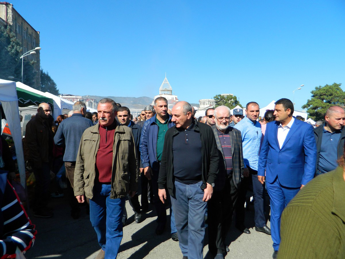 Հանրապետության բոլոր տնտեսվարողներին և անհատներին էր հնարավորություն տրվել՝ ցուցադրելու և վաճառելու իրենց արտադրածը: Հանրապետության յուրաքանչյուր շրջան ուներ իր տարածքը: Ինչպես միշտ, այս անգամ էլ ներկայացված բերք ու բարիքն օրհնեց Հայ Առաքելական եկեղեցու Արցախի թեմի առաջնորդ Պարգև արքեպիսկոպոս Մարտիրոսյանը: Այնուհետև ԱՀ նախագահ Բակո Սահակյանի գլխավորությամբ պաշտոնական պատվիրակությունը շրջեց տոնավաճառի տաղավարներով: Հանրապետության նախագահը զրուցում էր բարիք արտադրողների հետ, հետաքրքրվում վաճառքի հանված գյուղմթերքների և վերամշակված բարիքների արտադրությամբ։ ԱՀ գյուղատնտեսության նախարար Ժիրայր Միրզոյանը տեղեկացրեց, որ նախորդ տարվա համեմատ՝ այս տարի մոտ 250 նոր տաղավար է ավելացվել: Արցախի բոլոր շրջանների 167 համայնքներից մասնակցում են հազարից ավելի դիմորդներ: Խոսելով տոնավաճառին ներկայացրած ապրանքների գներից՝ գյուղնախարարն ասել է, որ բոլոր մասնակիցներին նախօրոք զգուշացված էր՝ վաճառքը պետք է իրականացվի շուկայականից 15-20 տոկոսով ցածր գնով, քանի որ ԱՀ գյուղնախարարությունը հոգացել է ճանապարհածախսը, ինչպես նաև հատկացրել է առանձին տաղավարներ: Ինչպես միշտ, այս անգամ ևս առանձնակի էր ներկայացել Քաշաթաղի շրջանը: Ստեղծվել էր հատուկ կամար՝ «Քաշաթաղի շրջան» պաստառով: Այցելուների համար իրականացվում էր հյուրասիրություն: Հատուկ տեղ էր հատկացված կենդանիների համար: Այստեղ նաև հովիվներն էին՝ յափնջիով ու մորթե գլխարկներով: Մոտ 40կգ քաշ ունեցող դդումի վրա քանդակված էր շրջանի առաջընթացը խորհրդանշող տեսարան/քանդակագործ՝ Տաթև Բաբայան/: Շրջվարչակազմի ղեկավարի տեղակալ Արտուշ Մխիթարյանը տեղեկացրեց, որ տոնավաճառին շրջանից մասնակցում է շուրջ 500 մեքենա: «Ներկայացրել ենք 60-ից ավելի ապրանքատեսակներ: Քանի որ մեր շրջանում տարբեր ազգերի ներկայացուցիչներ են ապրում, փորձել ենք այս տարի հետաքրքրություն մտցնել՝ ներկայացնելով հնդկական, սիրիական, լիբանանյան, ասորական, ռուսական խոհանոցներ՝ համապատասխան ազգերի ներկայացուցիչներով»,- հավելեց Ա. Մխիթարյանը: Օրվա ընթացքում զրուցեցի տարբեր համայնքների ներկայացուցիչների հետ, ովքեր բարիք են ներկայացրել վաճառքի: Մարտակերտի շրջանի Թալիշ գյուղի «Թարինջ» գյուղատնտեսական արտադրական կոլեկտիվ տնտեսությունը ներկայացրել էր համայնքի բերք ու բարիքից պատրաստված ապրանքատեսակներ՝ դոշաբ, օղի, մուրաբա, հյութեր: Կոլեկտիվ տնտեսության ղեկավար Լևոն Ապրեսյանն ասաց՝ տնտեսությունը ստեղծվել է 2017 թվականին: Արտադրում են Էկոլոգիապես մաքուր արտադրանք: « Թարինջ »-ի նպատակն է կատարած աշխատանքի շնորհիվ բնակիչներին հայրենի Թալիշում կրկին համախմբելն է: Առաջին կոլեկտիվ տնտեսությունն ունի շուրջ 20 աշխատող՝ գյուղում բնակվողները: Տնտեսությունն զբաղվում ե նաև մեղվաբուծությամբ, անասնապահությամբ: «Նպատակ ունենք հետագայում, շնորհիվ թալիշցիների աշխատասիրության, զարգացնելու և հզորացնելու համայնքը և հասնելու Թալիշի նախկին փառքին»,- հավելեց հայրենի բնօրրանի հոգսերով մտածող Լ. Ապրեսյանը: Քաշաթաղի շրջանի Ալաշկերտի գյուղական համայնքի ղեկավար Բագրատ Նավասարդյանը տեղեկացրեց, որ համայնքը ներկայացել է 18 մեքենայով, բերել են մոտ 10տ տարբեր բերք ու բարիք: Առևտուրը լավ էր ընթանում: Կովսականի քաղաքային համայնքի ղեկավար Ռազմիկ Մարգարյանը կարևորեց այն, որ 10-ից ավելի ընտանիք է մասնակցում տոնավաճառին, բերել են իրենց տարածքում արտադրվող միրգ ու բանջարեղեն, նաև տնական օղի, գինի: Բացի գյուղմթերքից, համայնքը ներկայացել էր նաև քաղաքում գործող արտադրամասում ստեղծված ձեռքի աշխատանքներով, որոնցով հետաքրքրվեց նաև Հանրապետության նախագահը: Քաշաթաղի շրջանի Գ