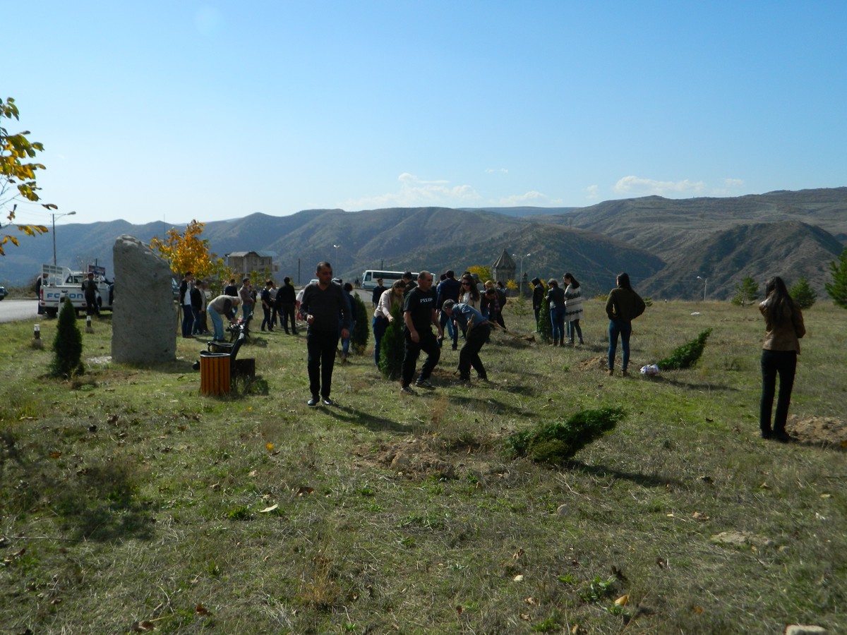 Առաջին ծառը տնկվեց 2015 թ. մարտի 19-ին, թշնամու մեծաքանակ ջոկատի դեմ հերոսաբար մարտնչած ու ծանր վիրավորված Հայոց բանակի զինվոր, այժմ ԵՊՀ ուսանող Գոռ Դարմանյանի, անցած ապրիլյան քառօրյայում արիություն ցուցաբերած Գևորգ Մանուկյանի և Ռաֆայել Հովհաննիսյանի մասնակցությամբ: Այնուհետև ուսանողները՝ խումբ-խումբ, բարձր տրամադրությամբ իրականացրեցին հայոց հողը նոր տնկիներով հարստացնելու նվիրական աշխատանքը: Տեսնելով ուսանողների աշխատանքը, խանդավառությունը՝ հիշեցի Թաթուլ Կրպեյանի խոսքը՝ «Ինչո՞ւ եք վախենում մահից։ Հողի համար ես հենց հիմա պատրաստ եմ մեռնելու՝ հողի եւ ազգի համար…»: Այդպես եղավ՝ Թաթուլն ու հազարավոր քաջորդիներ մարտիրոսվեցին այս հողի ազատագրման համար, և այժմ նրանց փոխարինողներն են այստեղ ծառեր տնկում: Սիրանուշ Մելիքյանը համալսարանի միջազգային հարաբերություններ ֆակուլտետի ասպիրանտ է: Բազում անգամ է եղել Արցախում և ամեն անգամ առիթն օգտագործում է՝ ներկա լինել Արցախում իրականացող իրադարձություններին: Լաուրա Մարտիրոսյանը մագիստրատուրայի առաջին կուրսի ուսանողուհի է, բակալավրիատն ավարտել է ժուռնալիստիկայի ֆակուլտետում: Նույնպես շատ է այցելել Արցախ, նաև մասնակցել Բերձորում իրականացող ծառատունկերին: Ընկերւուհու՝ լրագրող Աննա Հարությունյանի հետ նաև լրագրողական նյութեր է պատրաստում: Մանուշակ Ալավերդյանը կենսաբանության ֆակուլտետի 3-րդ կուրսից է, ծնունդով՝ Արցախի Հադրութի շրջանից: Քաշաթաղում առաջին անգամ է: Պատմության ֆակուլտետի 3-րդ կուրսեցիներ Շուշան Մուրադյանի, Տիրուհի Պետրոսյանի և կիրառական մաթեմատիկայի ֆակուլտետի 4-րդ կուրսի ուսանող, ջավախքեցի Սարգիս Դալարյանի հետ մի քանի ծառ արդեն տնկել էին: Ուրախ են, որ արդեն իրենց ներդրումն ունեն Քաշաթաղի շրջանում: ԵՊՀ ուսանողության հետ տարվող աշխատանքների կենտրոնի տնօրեն Վահագն Վարագյանը, ով մշտապես ուղեկցում է ուսանողներին Արցախում և ՀՀ տարբեր մարզերում, տեղեկացրեց, որ Արցախ եկել են հոկտեմբերի 27-ին՝ Քարվաճառով: 90 ուսանող և դասախոսներ են մասնակցում ուղերթին: Քարվաճառում Հայոց բանակի 25 ամյակի տոների շրջանակում ծառատունկ են իրականացրել: Ստեփանակերտում հանդիպում են ունեցել ԱՀ արտգործնախարար Մ. Մայիլյանի հետ: Այցելել են նաև «Եղնիկներ» զորամաս, հանդիպել զինվորների, հրամանատարության հետ, զորամասին տրամադրել արևային մարտկոց, այլ կարևոր իրեր: Գոռն ու Գևորգը, որ նույն զորամասում են ծառայել, մեկ անգամ ևս հանդիպեցին իրենց հրամանատարներին: Հայոց լեզվի և գրականության ֆակուլտետի դասախոս, ԵՊՀ հայ գրականության ամբիոնի վարիչ, բանասիրական գիտությունների դոկտոր Սամվել Մուրադյանը կարևորեց այն, որ ուսանողներն Արցախում են մասնակից լինում նման միջոցառումների: Ասաց՝ յուրաքանչյուր ուղևորության ժամանակ ձգտում են նոր ուսանողների Արցախ բերել, որպեսզի շատերը ճանաչեն ու սիրեն ազատագրված ու անկախացած մեր երկիրը, Քարվաճառն ու Քաշաթաղը: Տեղեկացրեց՝ Քարվաճառի դպրոցին Համալսարանի հրատարակած գրքերից են նվիրել: Ուսանողներն այցելել են նաև Գանձասար ու Տիգրանակերտ: ԵՊՀ լեռնագնացության և արտակարգ իրավիճակների ակումբը, որն ունի 50-ից ավելի անդամ, ստեղծվել է 1 տարի առաջ: Ակումբի նախագահ ու հրահանգիչ Սուրեն Ստեփանյանն ուրախությամբ տեղեկացրեց, որ Ստեփանակերտում հանդիպում է ունեցել Արցախի լեռնագնացների հետ, դասախոսություն կարդացել: Իրականացրել են նաև ժայռամագլցում Ստեփանակերտ-Մարտունի ճանապարհաեզրի ժայռերի վրա: Նաև կնքել են համագործակցության հուշագիր: Արցախցի լեռնագնացներին հրավիրել են Երևան: Ծառատունկին ներկա էր նաև ֆրանսիացի հայագետ, հոգեբան Կատրի Լեսիմբլը: Ասաց՝ իր երկրում աշխատելով հոգեբան, շփվել է հայե