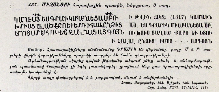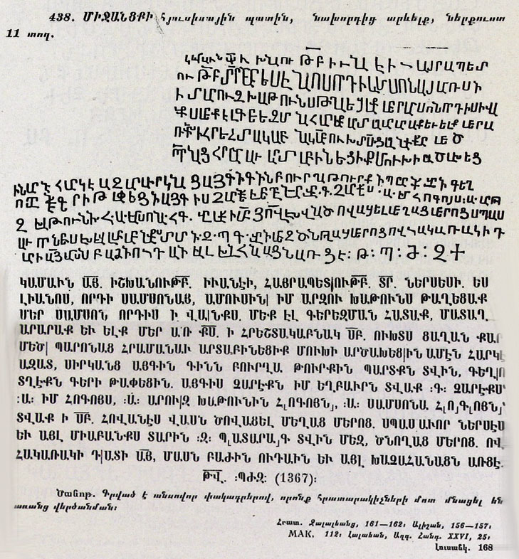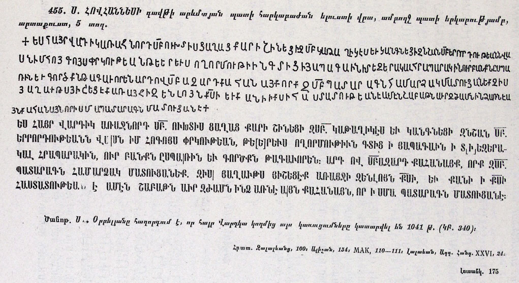 [10] Տե՛ս Դիվան հայ վիմագրության, 3-րդ պրակ., Ե․, 1967թ․, էջ 140-141։