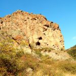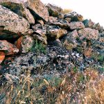 Մեկ այլ քարայրի առաստաղից անընդհատ ջուր է հոսում, որն էլ օգտագործվել է խմելու նպատակով: Այժմ էլ, չնայած շոգ ու չոր եղանակին, աղբյուրի ջուրը կա: Ժայռի հարավարևմտյան պատի վրա փոսորակներ կան՝ ժամանակի ընթացքում սևացած: Իսկ մոտով արահետ կա, որը մտնում է սնկաձև ժայռերով հարուստ ձորակ: Այստեղ մի շինության ավերակ կա, որը մատուռ կամ եկեղեցի է եղել: 2 տարի առաջ պատահաբար նկատեցինք, որ այս հսկայական ժայռի հյուսիսարևելյան կողմում պարիսպ կա: Մոտեցանք. պարզվեց մոտ 200մ երկարությամբ, 1,5մ լայնությամբ պարիսպ է, որի որոշ հատվածներ լավ են պահպանվել, որոշները՝ փլվել; Ժամանակին անառիկ ամրոցներից մեկն է եղել: 3 կողմից բնական ամրություններ են, իսկ հյուսիսային կողմում սնկաձև բազում ժայռերով ձորալանջ: Այս տարվա հուլիսի 29-ին հնագետներ Գագիկ Սարգսյանի, Արտակ Գնունու, Հենրիկ Դանիելյանի և արձակագիր-հրապարակախոս-գեղանկարիչ Բակուր Կարապետյանի հետ երկրորդ անգամ բարձրացա ամրոցատեղի: Շրջելով 4 կողմում՝ պարզեցինք, որ ամրոցի հիմնական մուտքը հյուսիսարևելյան կողմում է եղել: Մուտքի մոտ կանգուն է եղել մոտ 10 մետր շառավղով բուրգը, որի հիմքերից վերև մոտ 1մ բարձրությամբ պատ է պահպանվել: Մեծ ու մշակված քարերով են կառուցել բուրգը: Պարիսպն անշաղախ է, բայց հիմնականում մշակված քարերով: Ծառերն ու թփերը, հատկապես՝ ցախավելը, ծածկել են պարսպի ու բուրգի մեծ մասը: Մուտքից մոտ 30մ արևելք պահպանվել են պատերի հետքեր: Դարերի ընթացքում հողը ծածկել է ներսի շինությունները, և միայն պեղումները հնարավորություն կտան՝ ճշտելու ամրոցի հատակագիծը: Ընդհանուր առմամբ որպես կացարան կամ զորանոց օգտագործվել են ամրոցի հարավային կողմի բնական քարայրները: Զգացվում է՝ դրանց մի մասը մշակված է: Պահպանված պարիսպը հուշում է` ամրոցը գոյություն է ունեցել միջնադարում: